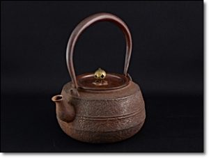 岩手県で作られる南部鉄瓶や京都などで作られた金銀象嵌や霰模様等の技工を凝らした鉄瓶などが代表的な物です。